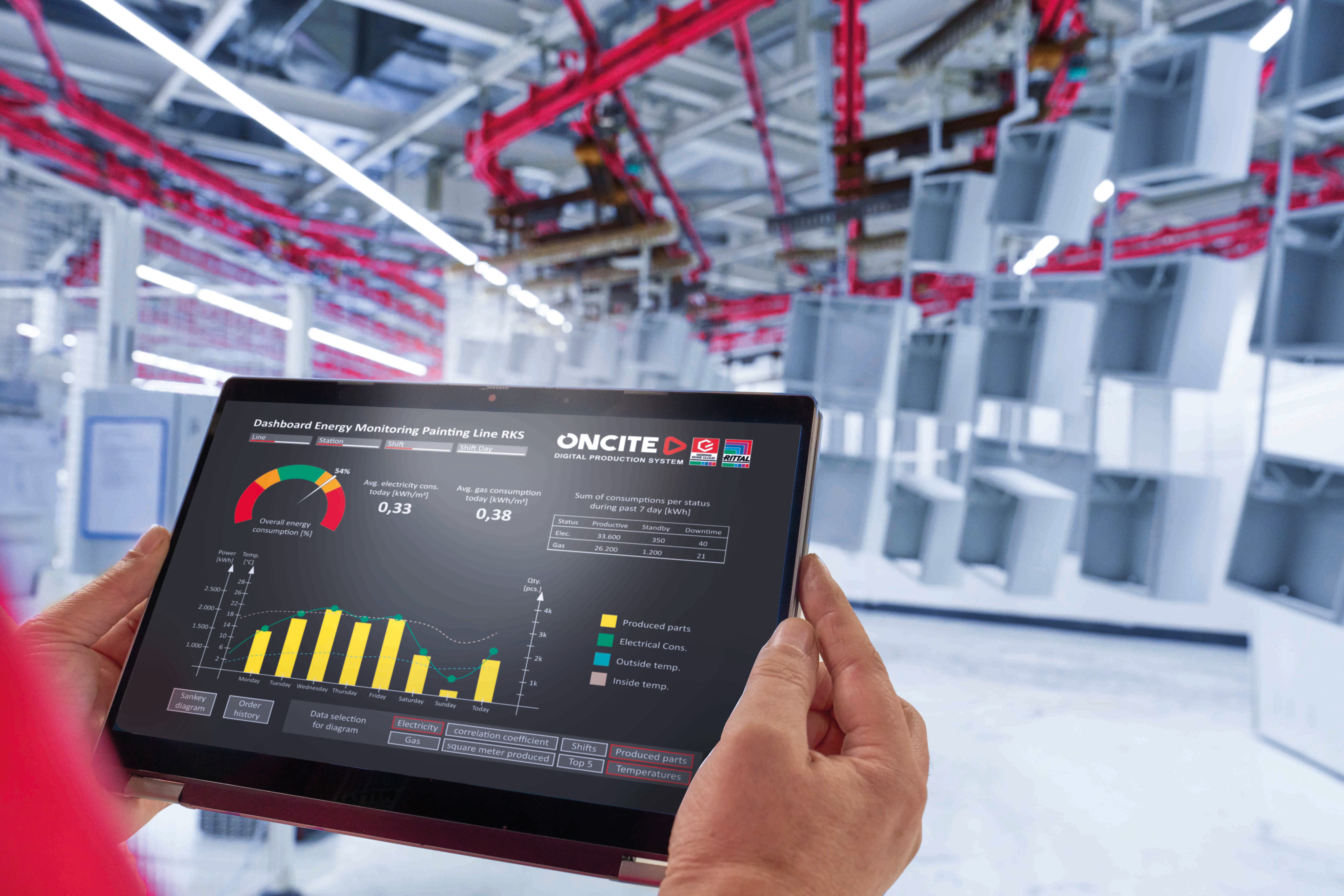 U fabrikama transformacija mora ići dalje od čiste energetske efikasnosti postrojenja. „Ako dovoljno povoljna struja više nije dostupna u svakom trenutku, operateri fabrika moraju upravljati svojom proizvodnjom i prema dostupnosti i ceni energije“, objašnjava Dieter Meuser, CEO Digital Solutions u German Edge Cloud-u: „Osnova za to je fleksibilnost univerzalne digitalne platforme kao što je ONCITE Digital Production System, koji integriše podatke monitoringa energije u transparentnost jedne Smart Production.“ Za to ona mora biti povezana sa prostorima podataka oko proizvoda i postrojenja. Ovde sestrinske kompanije unose svoje kompetencije: Eplan i Rittal za digitalnog blizanca postrojenja, Cideon oko blizanca proizvoda.