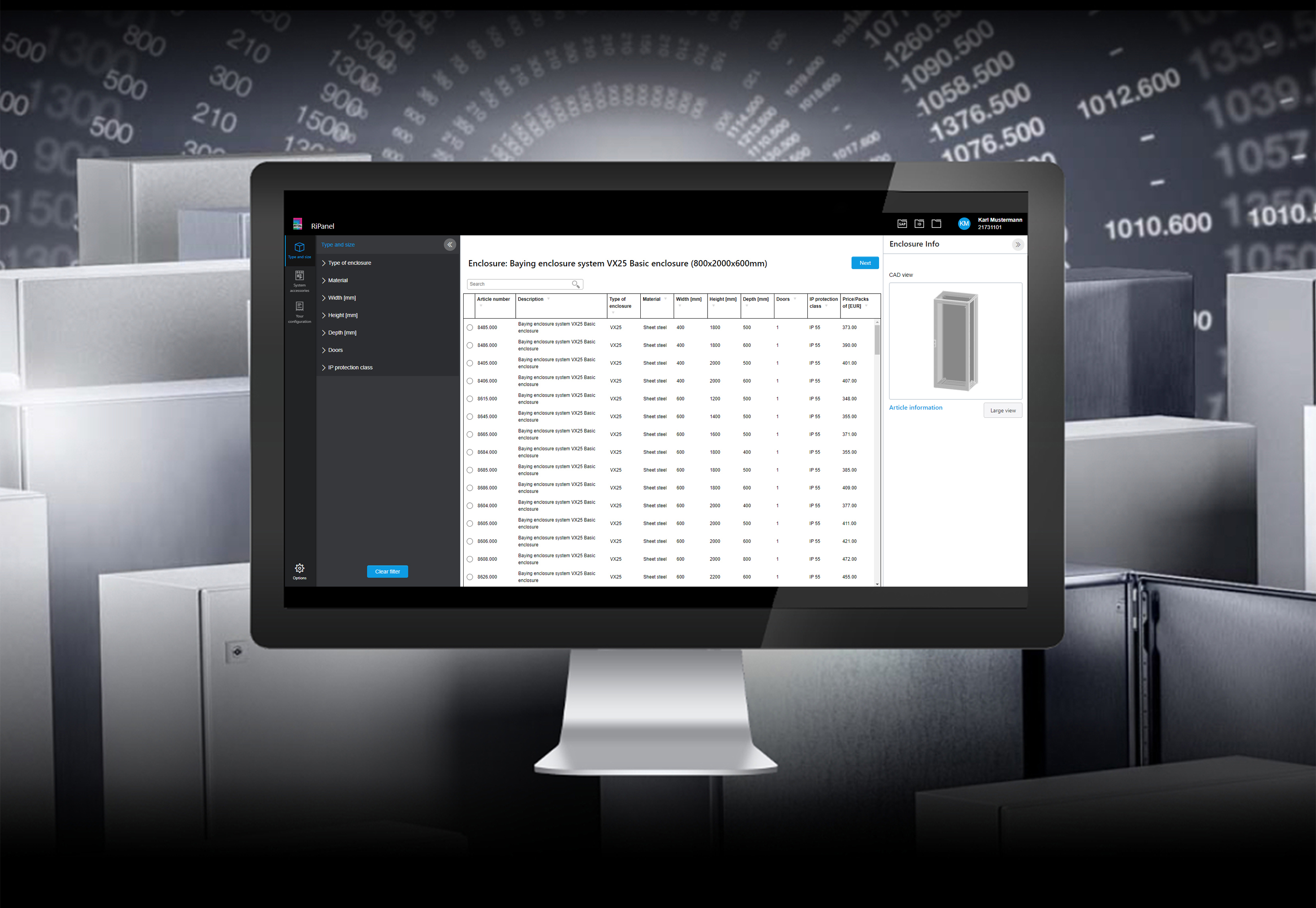 Komplexa produkter som kapslingssystem planeras enkelt i 3D, konfigureras individuellt och beställs snabbt tack vare direkt prisinformation. För systemplanerare är detta nu ännu enklare.Med Rittals RiPanel kan anpassade kapslingar, inklusive tillbehör och prisinformation, också konfigureras och beställas online.