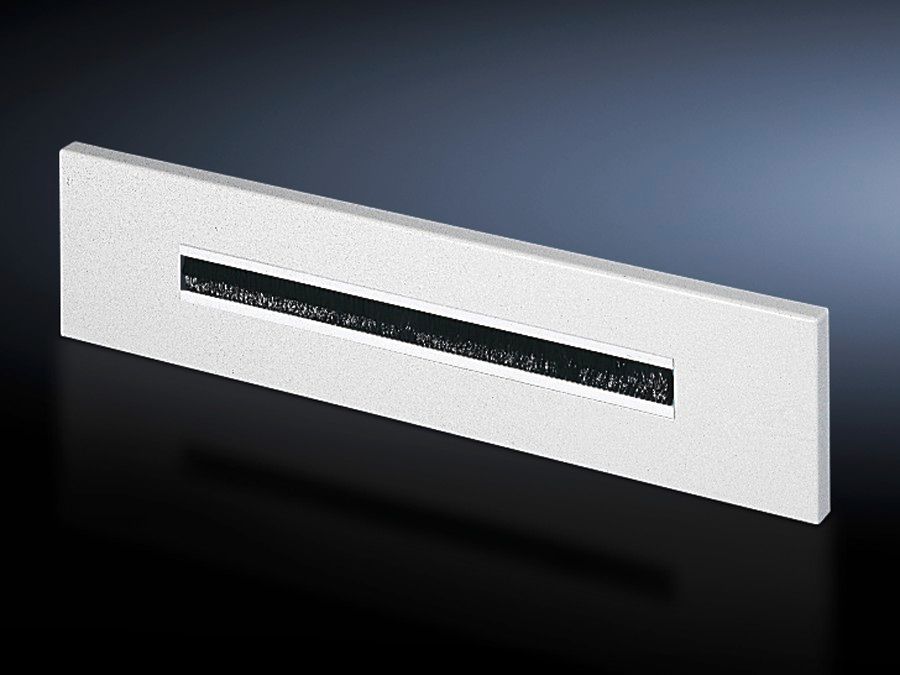 - Kantad plåtfläns med inskummad tätning och plastborstinsatser för enkel kabelinföring.