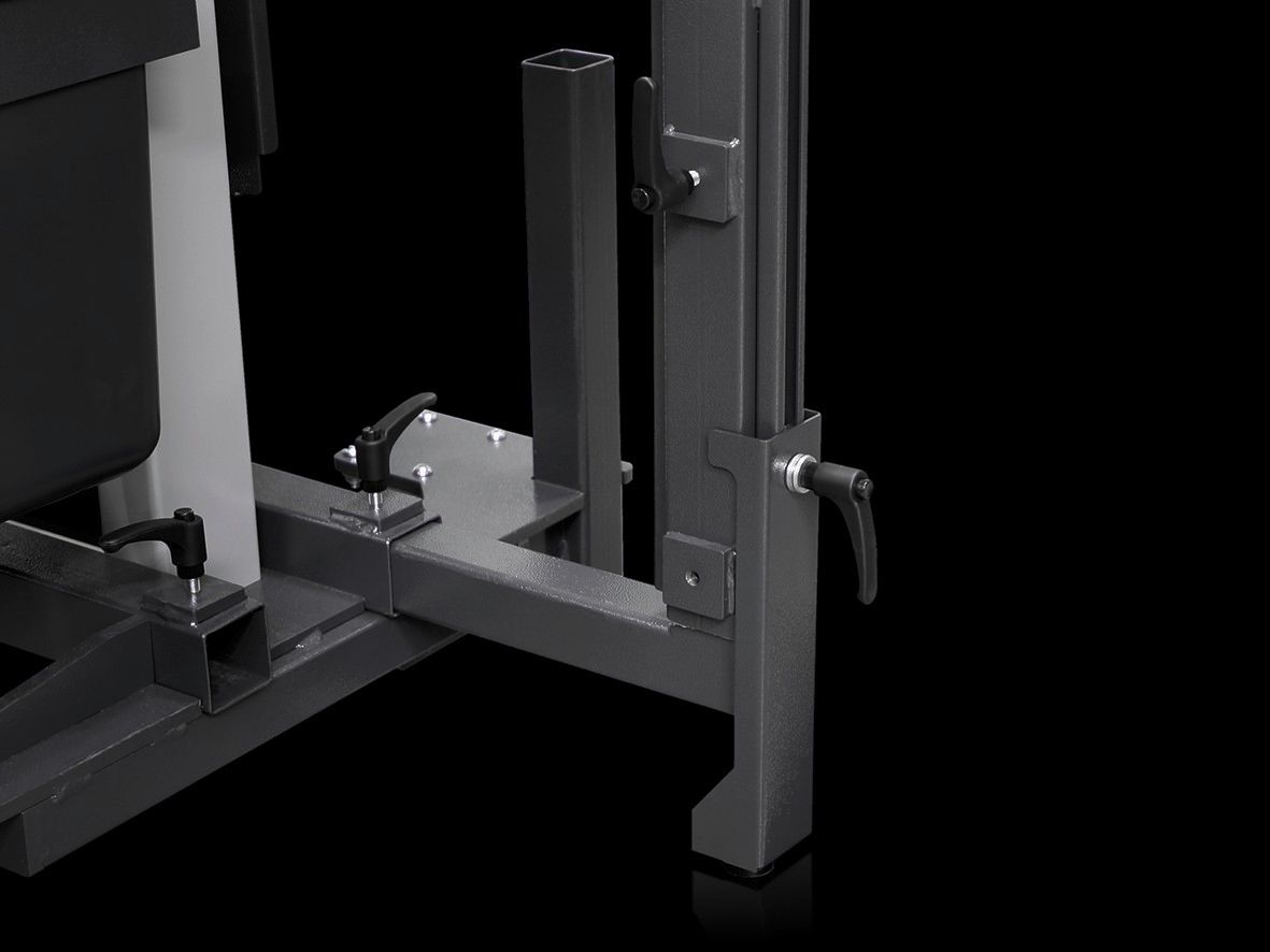 Devrilme önleme emniyeti Tek taraflı yüklemede devrilme riskini önlemek için kademesiz ayarlanabilir destek. Ekipman taşıyıcı sol, sağ ve dikey sabitleme dikmesi için uygundur.