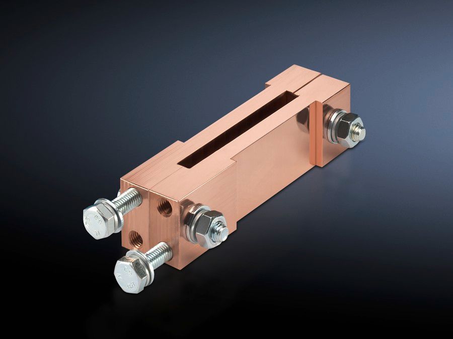 Terminal block, distribution busbar for fuse-switch disconnector section For connecting the connection brackets to the distribution busbar system of the switch-disconnector-fuse section, no drilling required.